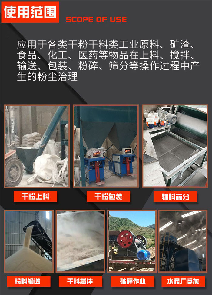 該設(shè)備為多袋式脈沖除塵裝置,當(dāng)含塵氣體由進(jìn)風(fēng)口進(jìn)入除塵器,首先碰到進(jìn)出風(fēng)口中間的斜板及擋板,氣流便轉(zhuǎn)向流入灰斗,同時(shí)氣流速度放慢,由于慣性作用,使氣體中粗顆粒粉塵直接流入灰斗。起預(yù)收塵的作用,進(jìn)入灰斗的氣流隨后折而向上通過內(nèi)部裝有金屬骨架的濾袋粉塵被捕集在濾袋的外表面,凈化后的氣體進(jìn)入濾袋室上部清潔室,匯集到出風(fēng)口排出,含塵氣體通過濾袋凈化的過程中,隨著時(shí)間的增加而積附在濾袋上的粉塵越來越多,增加濾袋阻力,致使處理風(fēng)量逐漸減少,為正常工作,要控制阻力在一定范圍內(nèi)(140--170毫米水柱),必須對(duì)濾袋進(jìn)行清灰,清灰時(shí)由脈沖控制儀順序觸發(fā)各控制閥開啟脈沖閥,氣包內(nèi)的壓縮空氣由噴吹管各孔經(jīng)文氏管噴射到各相應(yīng)的濾袋內(nèi),濾袋瞬間急劇膨脹,使積附在濾袋表面的粉塵脫落,濾袋得到再生。清下粉塵落入灰斗,經(jīng)排灰系統(tǒng)排出機(jī)體。由此使積附在濾袋上的粉塵周期地脈沖噴吹清灰,使凈化氣體正常通過,保證除塵系統(tǒng)運(yùn)行。